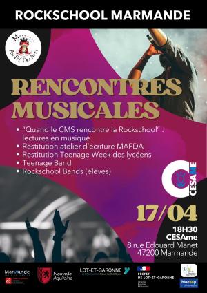 Nous fêterons les rencontres entre les générations, entre les mots et la musique, entre des jeunes qui ne se connaissaient pas quelques jours auparavant ... et la rencontre entre VOUS et NOUS !